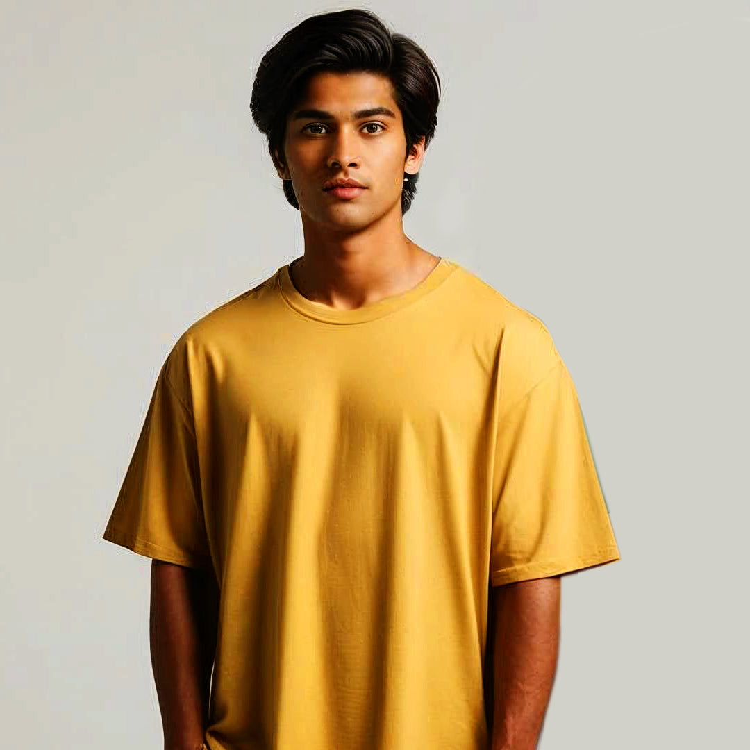 OVER SIZED FIT PLAIN MUSTARD YELLOW T-SHIRT
